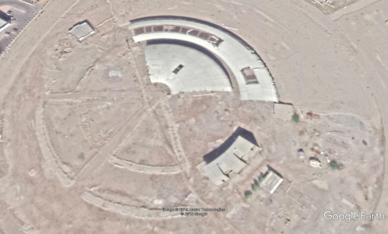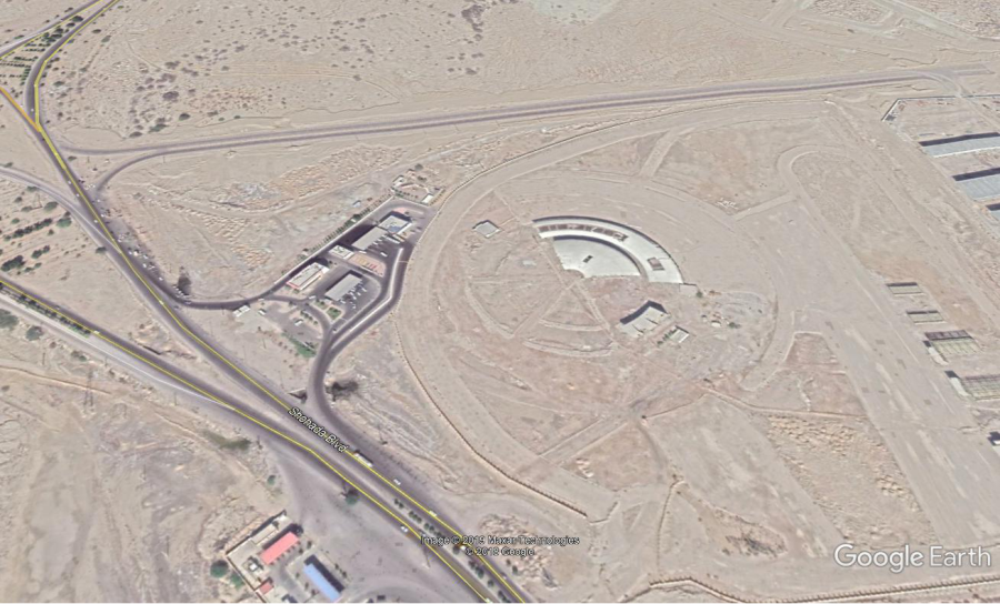 This unfinished building I found on Google Earth almost due North of the Straits of Homuz in a desert location of Iran. Comparing the length of a car at 20' the diameter of this structure looks to be some 800' to 1,000'. WHAT is it??