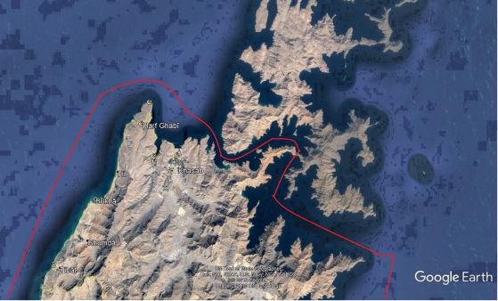 Below: After reviewing these Google Earth pics is there some logistical or logical reason not to blast an opening in a narrow land mass and allow ships to take this route through a UAE passage way?